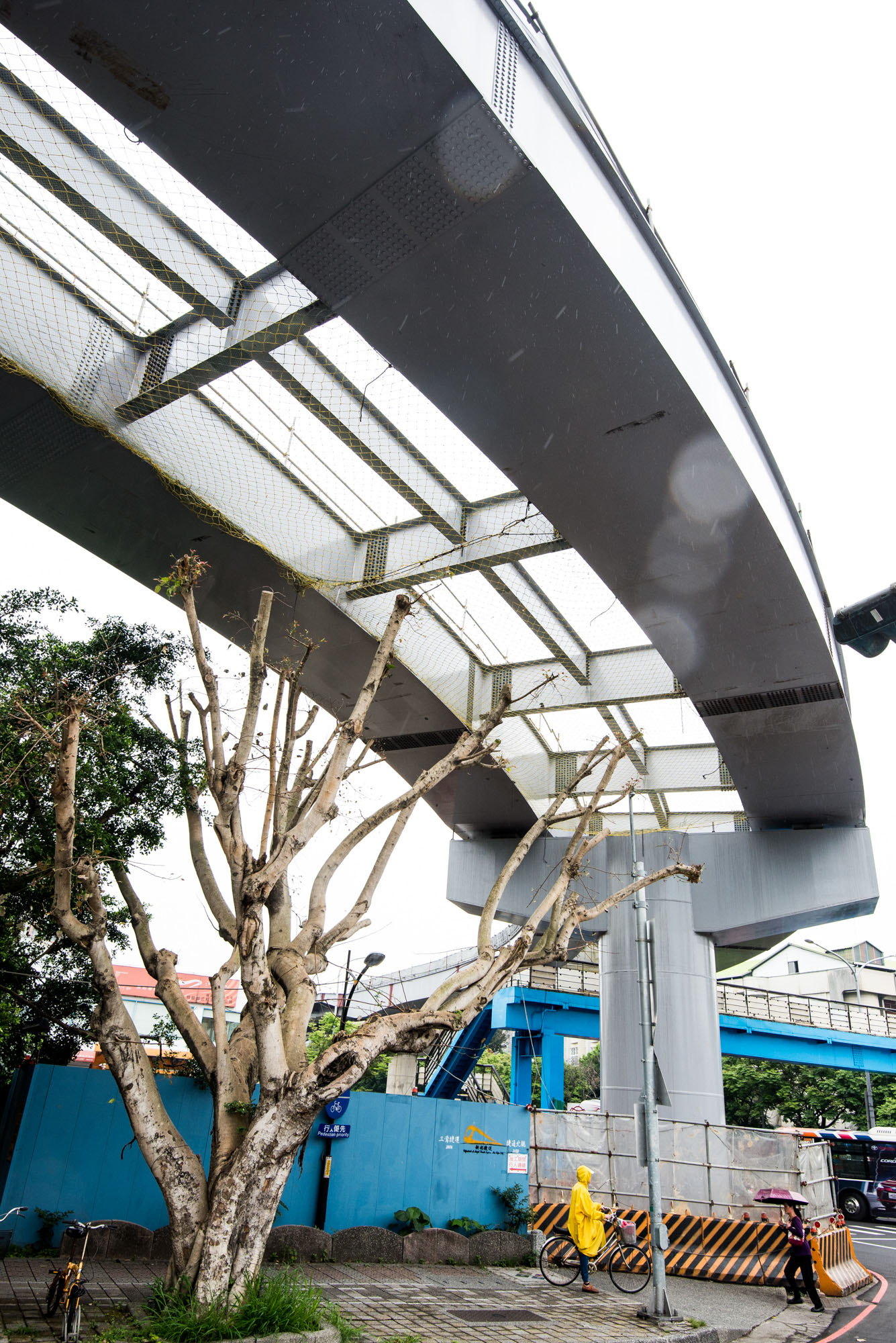 在攝影的路上,我驚訝發現許多原本熟悉的參天大樹,竟遭受了異常慘烈的修剪,很明顯它們是捷運工程下的犧牲者。我極度痛心的拍下了現況,記錄了它們當下要死不活的倩影,哼,誰叫你們擋了人類的好路。(淚)